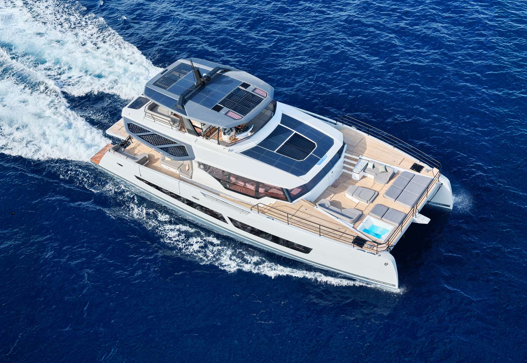 Introducing M/Y Alina, the breathtaking new Power 80 by Fountaine Pajot, a vessel that redefines luxury cruising with its remarkable elegance, spacious design, and innovative style.